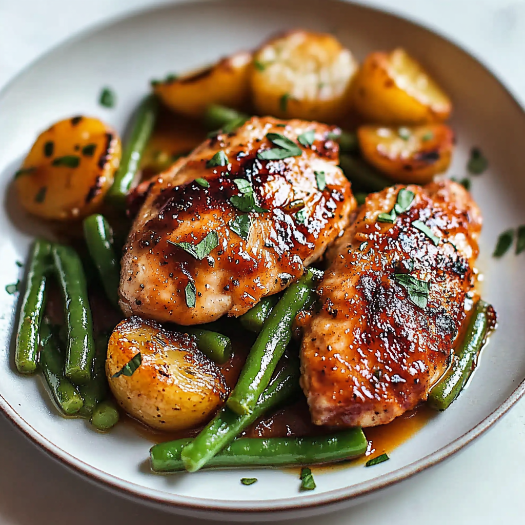 Add Green Beans and Garlic: Toss fresh green beans around the chicken in the baking dish. Mince garlic cloves and sprinkle them over everything. The aroma will be heavenly!