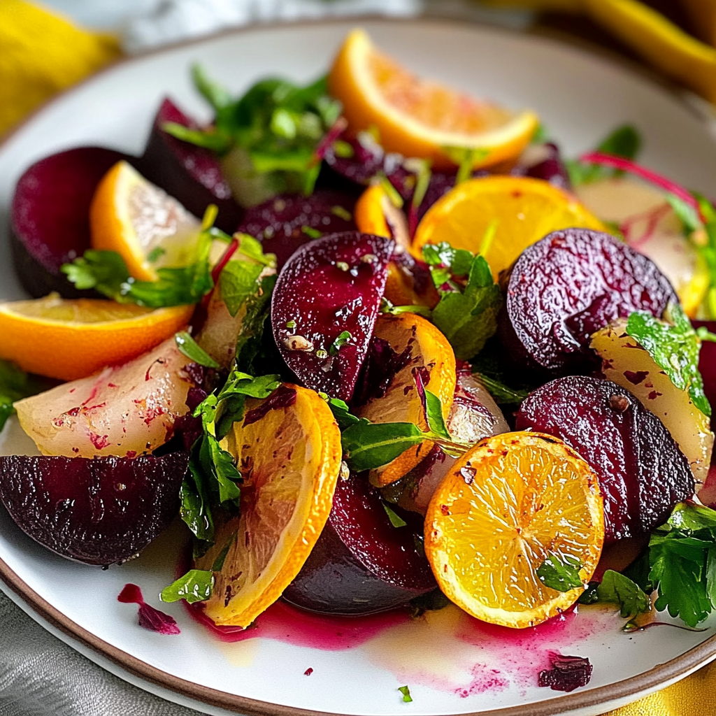 - This delightful winter roasted beet and orange salad recipe not only bursts with color but also balances sweetness and earthiness