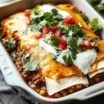 Easy Cheesy Ground Beef Enchiladas are the ultimate comfort food, perfect for family gatherings or cozy weeknight dinners. With layers of seasoned ground beef, gooey cheese, and soft tortillas, this dish offers a delightful explosion of flavor in every bite. Topped with zesty enchilada sauce and served with sour cream, it’s sure to be a hit at your table. Get ready to enjoy a warm, satisfying meal that everyone will love!