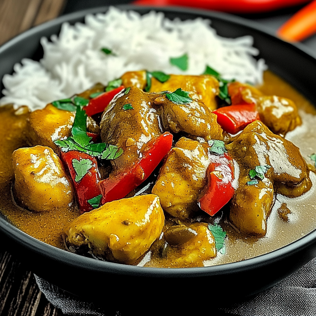 Authentic Jamaican Curry Chicken is a vibrant, flavor-packed dish that tantalizes the senses with its rich blend of spices and creamy coconut milk. Tender chicken thighs simmer in a fragrant sauce, creating a delightful experience perfect for family gatherings or weeknight dinners. With the warmth of fresh ginger, garlic, and the fiery kick of Scotch bonnet pepper, this recipe brings the taste of Jamaica right to your kitchen. Serve it over rice for a satisfying meal that will leave your guests asking for seconds.
