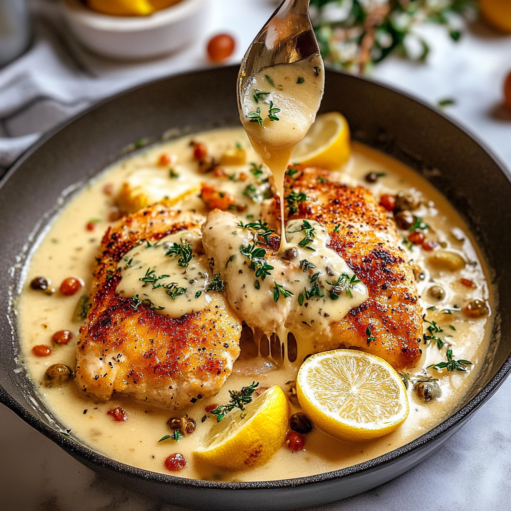 Indulge in the delightful flavors of Irresistible Creamy Lemon Chicken with Parmesan Sauce. This dish features tender chicken breasts enveloped in a luscious, buttery lemon sauce, enriched with fresh garlic and melted Parmesan. Perfect for cozy weeknight dinners or elegant gatherings, this recipe guarantees to impress your family and friends. With its vibrant colors and creamy texture, each bite will transport you to culinary bliss.